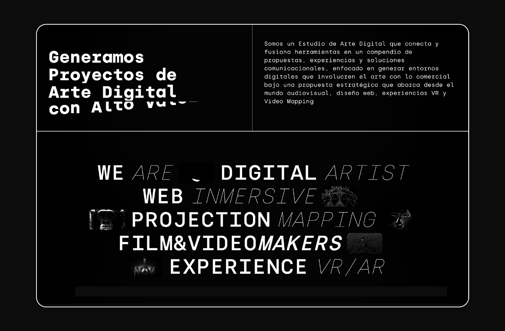 We designed and developed the website for CompendioLab, a Digital Art studio that connects and merges tools into a compendium of proposals, experiences, and communication solutions. The studio focuses on creating digital environments that blend art with commerce through a strategic approach encompassing audiovisual production, web design, VR experiences, and video mapping.
